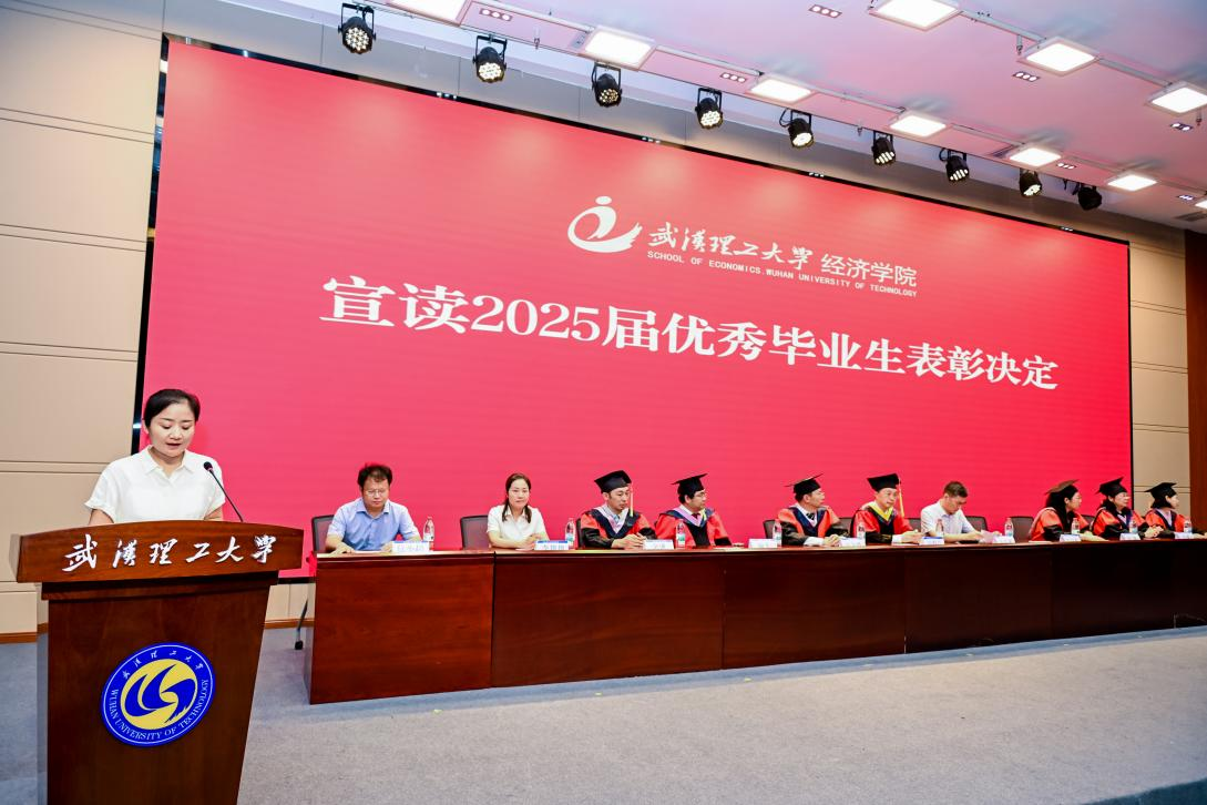 Vice President Qiao Yunli read the decision to recognize the outstanding graduates of the College of Economics Class of 2025.