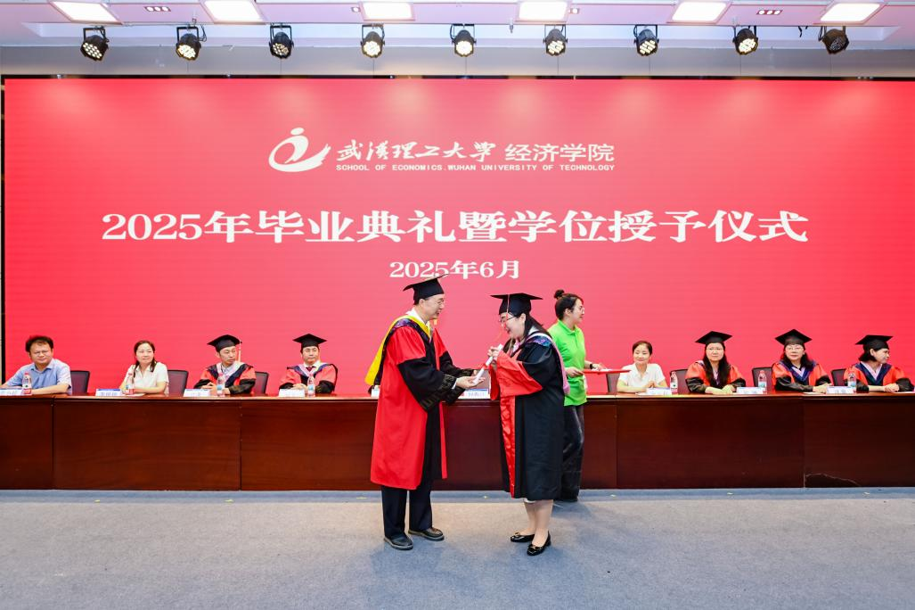 On the afternoon of June 14, the 2025 Graduation Ceremony and Degree Conferral Ceremony of the School of Economics was held in the Academic Auditorium of the Library of South Lake Campus.Vice President Liu Chunjiang, all the leaders of the School of Economics, representatives of department heads, teacher representatives, 2025 graduates of the College and some parent representatives attended the graduation ceremony, and Zhang Guanghua, Secretary of the Party Committee of the College, presided over the ceremony.